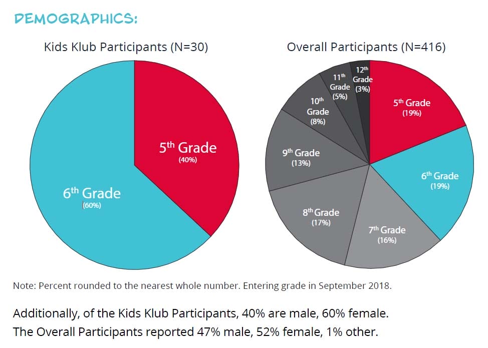 The survey results measure the 30 North Providence Kids Klub participants compared to 416 overall summer participants (including the North Providence Kids Klub data).